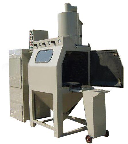 2、配备活动式台车和转盘,操作时将工件放在转盘上,然后推入机内即可自动喷砂作业,操作简单省力。